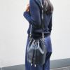 ソフトな質感と軽さが特徴のイタリアンWフェイスレザーを使用した巾着バッグ。