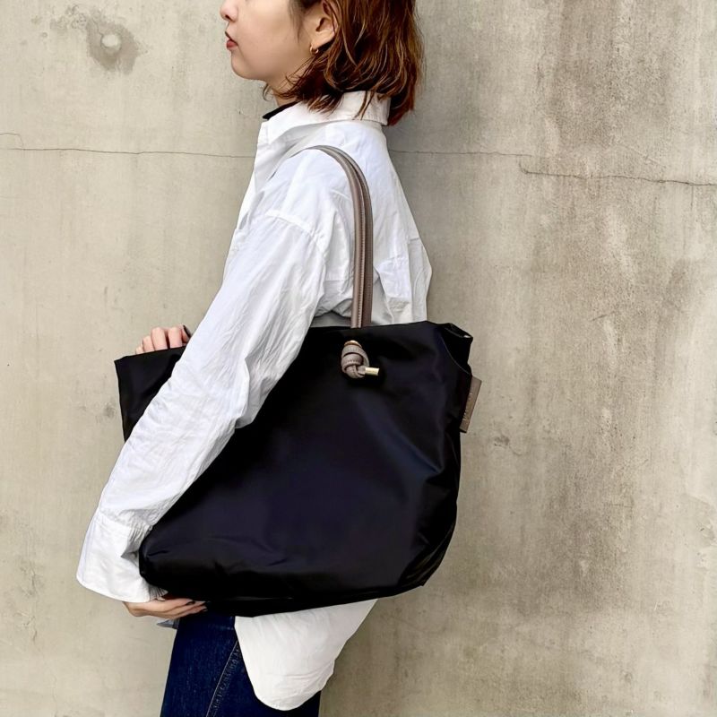 シンプルなデザインのボディにノットハンドルがアクセントになったトートバッグのMLサイズ。