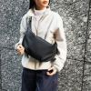 弱撥水性のあるカジュアルなナイロン素材にレザーのショルダーベルトの組み合わせが上品なボディバッグ。