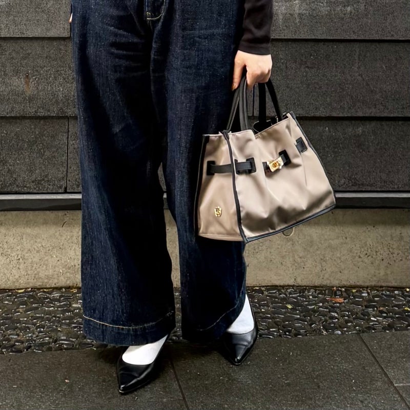 ナイロン素材とイタリアンレザーを組み合わせたトートバッグのMサイズ。