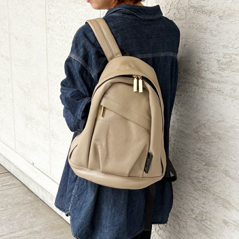 レザーのリュックですが、ショルダー後ろや背面はメッシュ素材を使用しているため、通気性がいいところも嬉しいポイント◎