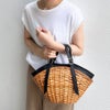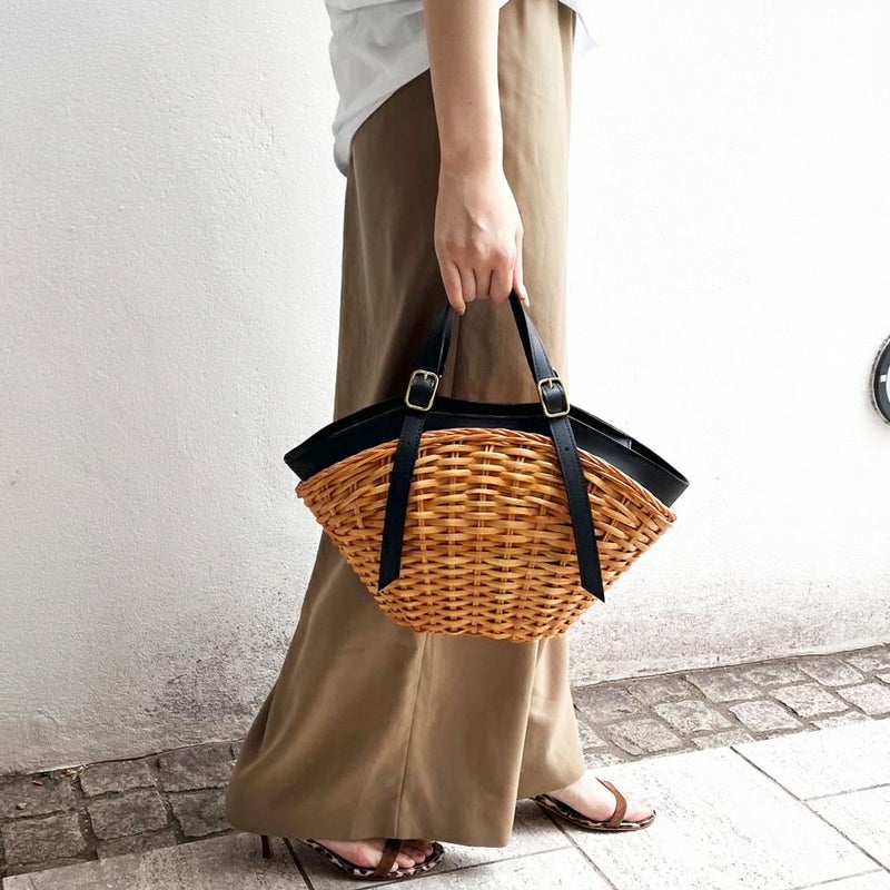 レザーを効かせたスプリットラタンのトートバッグ。