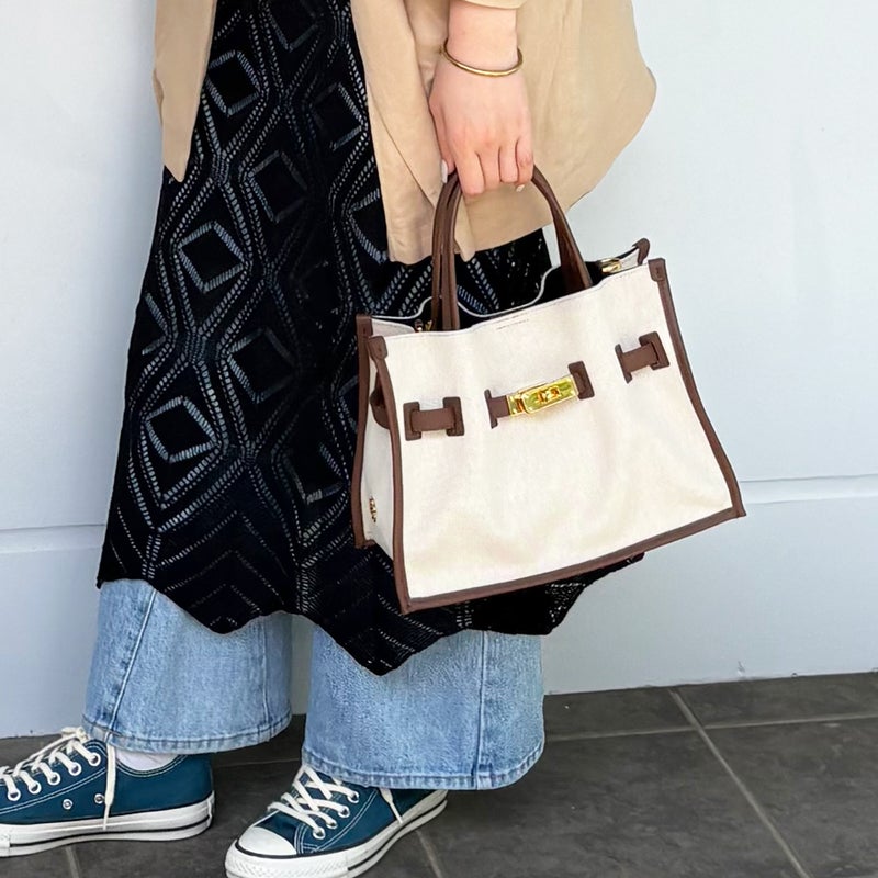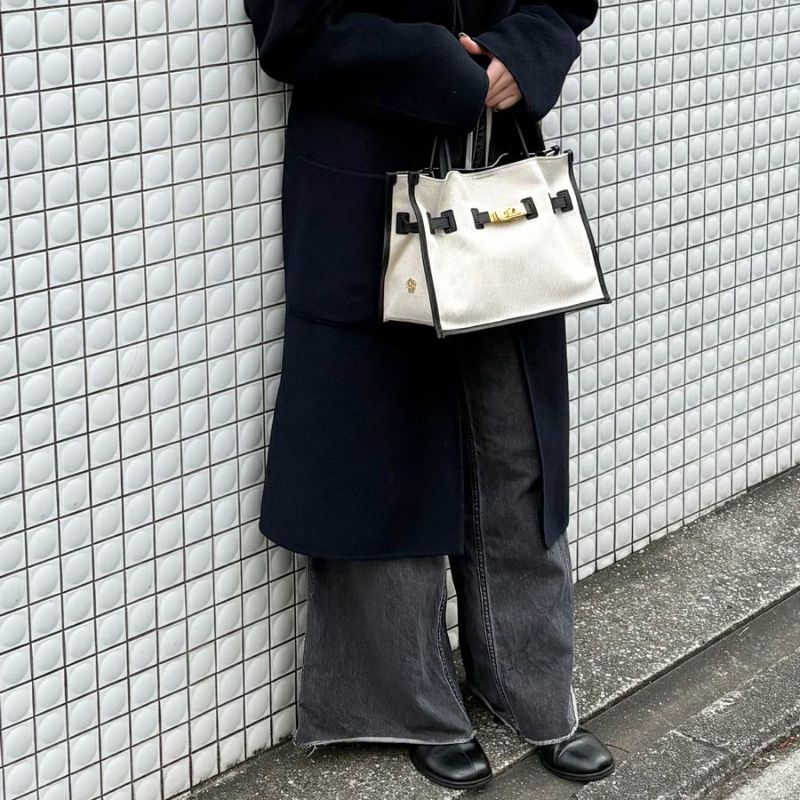 キャンバス素材とイタリアンレザーを組み合わせたトートバッグのMサイズ。