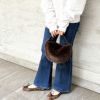 上品な光沢と柔らかな手触り、カラーが魅力のレッキスラビットファータイプのエコファーを使用した三日月型バッグ。