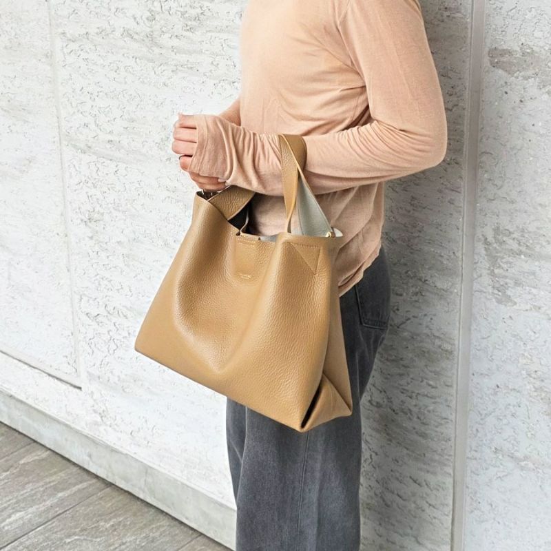 ソフトな質感と軽さが特徴のイタリアンWフェイスレザーを使用したトートバッグのMサイズ。
