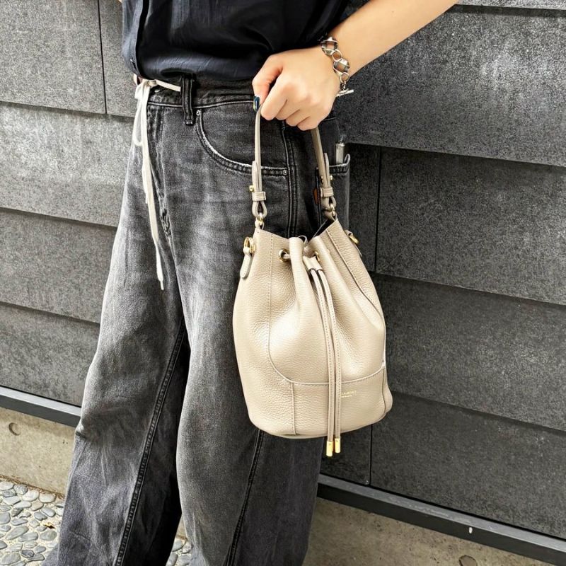 ソフトな質感と軽さが特徴のイタリアンWフェイスレザーを使用した巾着バッグ。