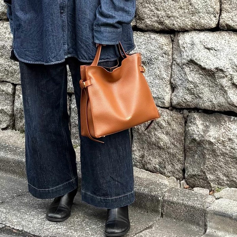 イタリアンWフェイスレザー サイドベルト トートバッグ
