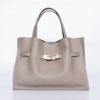 革新的なダブルフェイス製法で特許を取得したダブルフェイスのスムースレザーで仕立てたトートバッグのMサイズ。