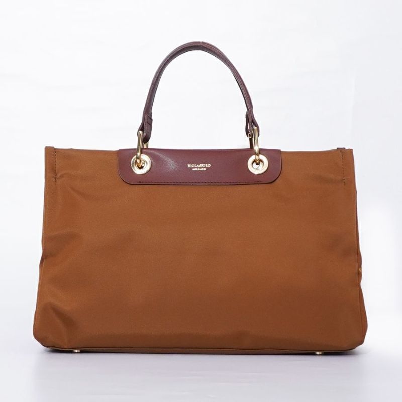 さりげないゴールド金具が上品なナイロンのトートバッグ。