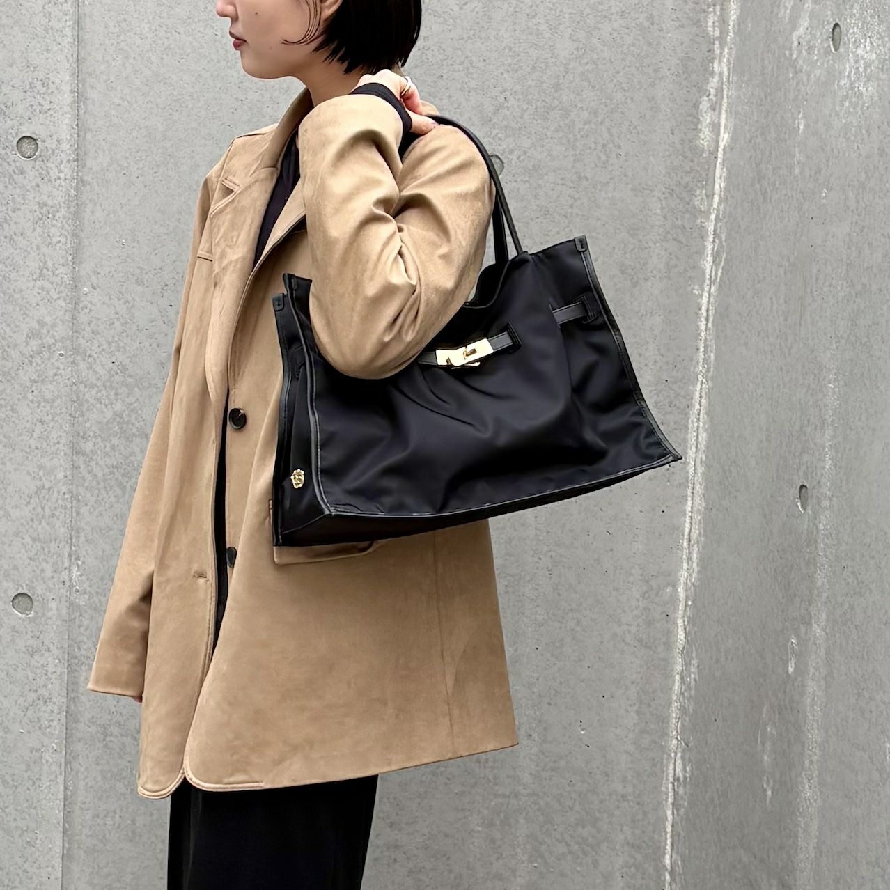 ナイロン素材とイタリアンレザーを組み合わせたトートバッグのLサイズ。