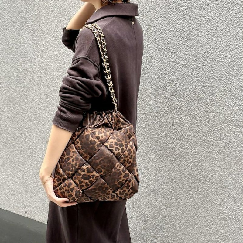 ナイロンボンディング レオパードプリント チェーンショルダーバッグ