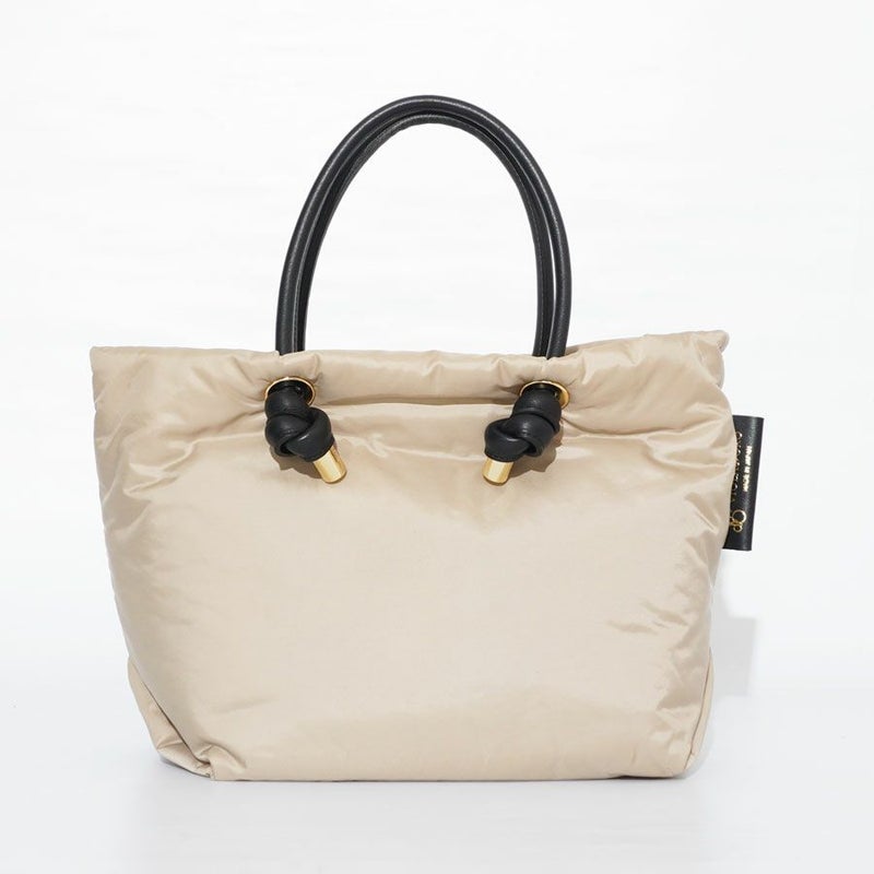 撥水性のあるナイロンをふっくらとしたボンディング仕様にしたトートバッグ。