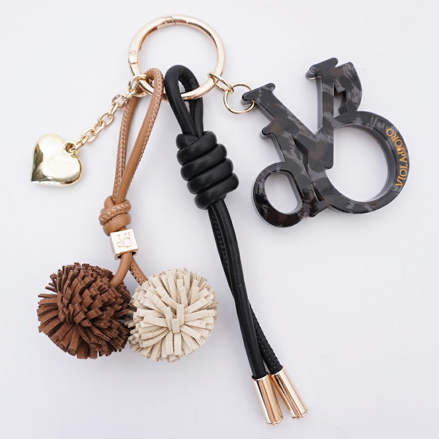 お持ちのバッグを華やかにしてくれる、オリジナルのロゴアクリルパーツのついたバッグチャーム。