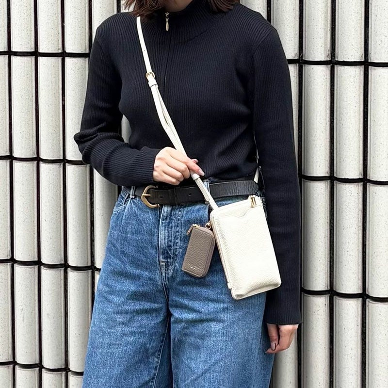カジュアルに合わせやすいシュリンク型押しレザーのスマートキーケース。