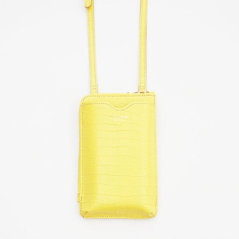 上品なクロコの型押しレザーのスマートフォンポシェット。