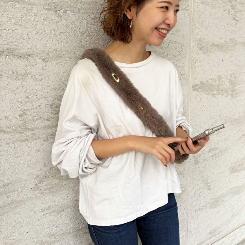 柔らかくリアルに近い風合いのエコファーを使用した、スマートフォンをシンプルに身につけることのできるショルダーベルト。
