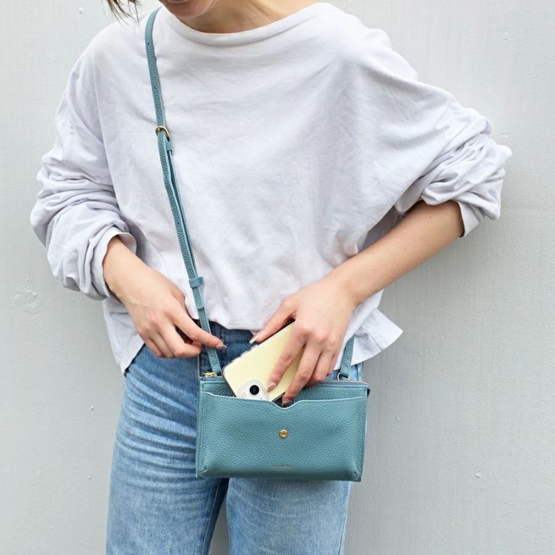 イタリアン型押しレザーの横型スマートフォンポシェット。
