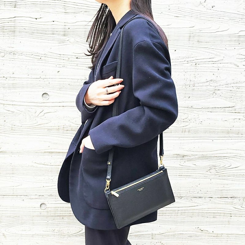 イタリアン型押しレザーのお財布機能付きポシェット。
