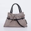 カジュアルなナイロン素材にレザーのベルト使いが大人女性が持ちやすい上品なナイロントートバッグ。