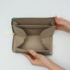 女性の手に収まりの良いスマートなサイズで、中も取り出しやすいファスナー開閉タイプ。