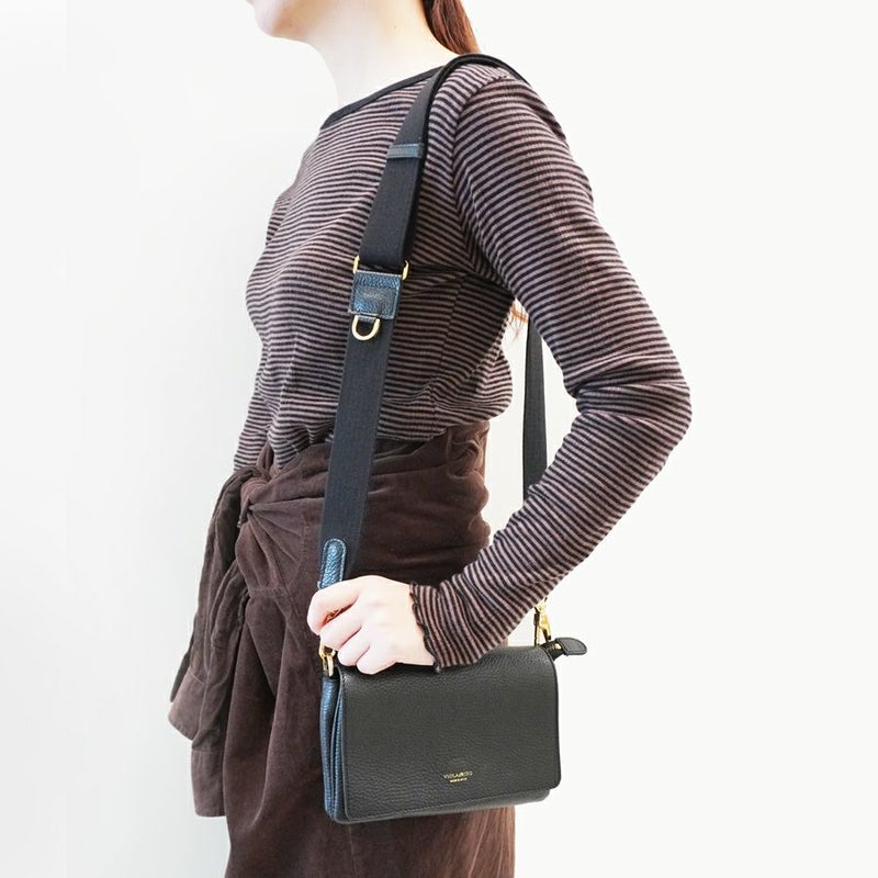 コンパクトな見た目ながらも二つ折り財布や携帯など身の回りのものを整頓しながら収納可能。